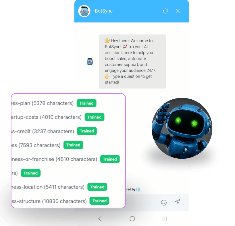 Scale your chatbot business without the tech overwhelm. Bot Sync gives you the tools to create, customize, and monetize high-converting chatbots, all under your own brand.